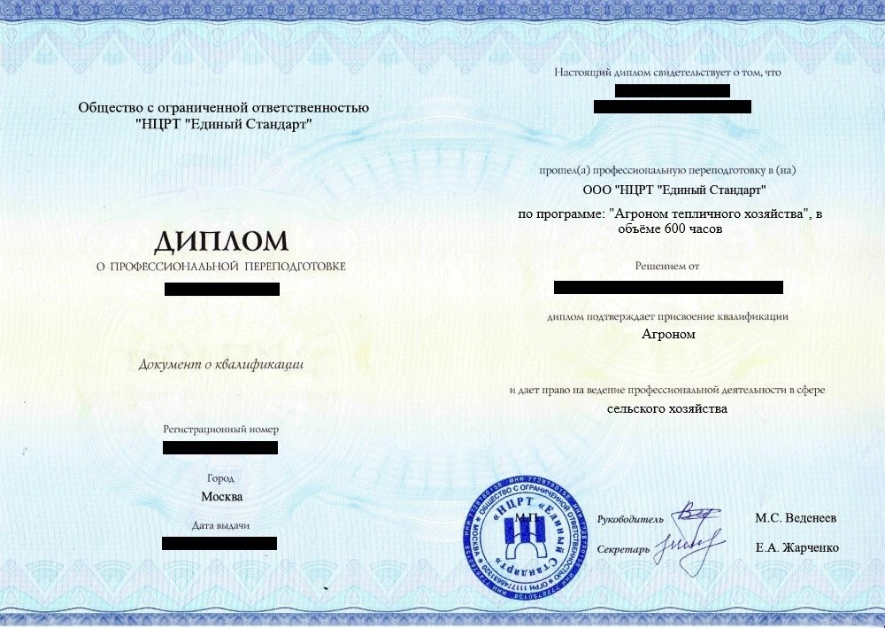 • «Агроном» с правом ведения профессиональной деятельности в сфере сельского хозяйства