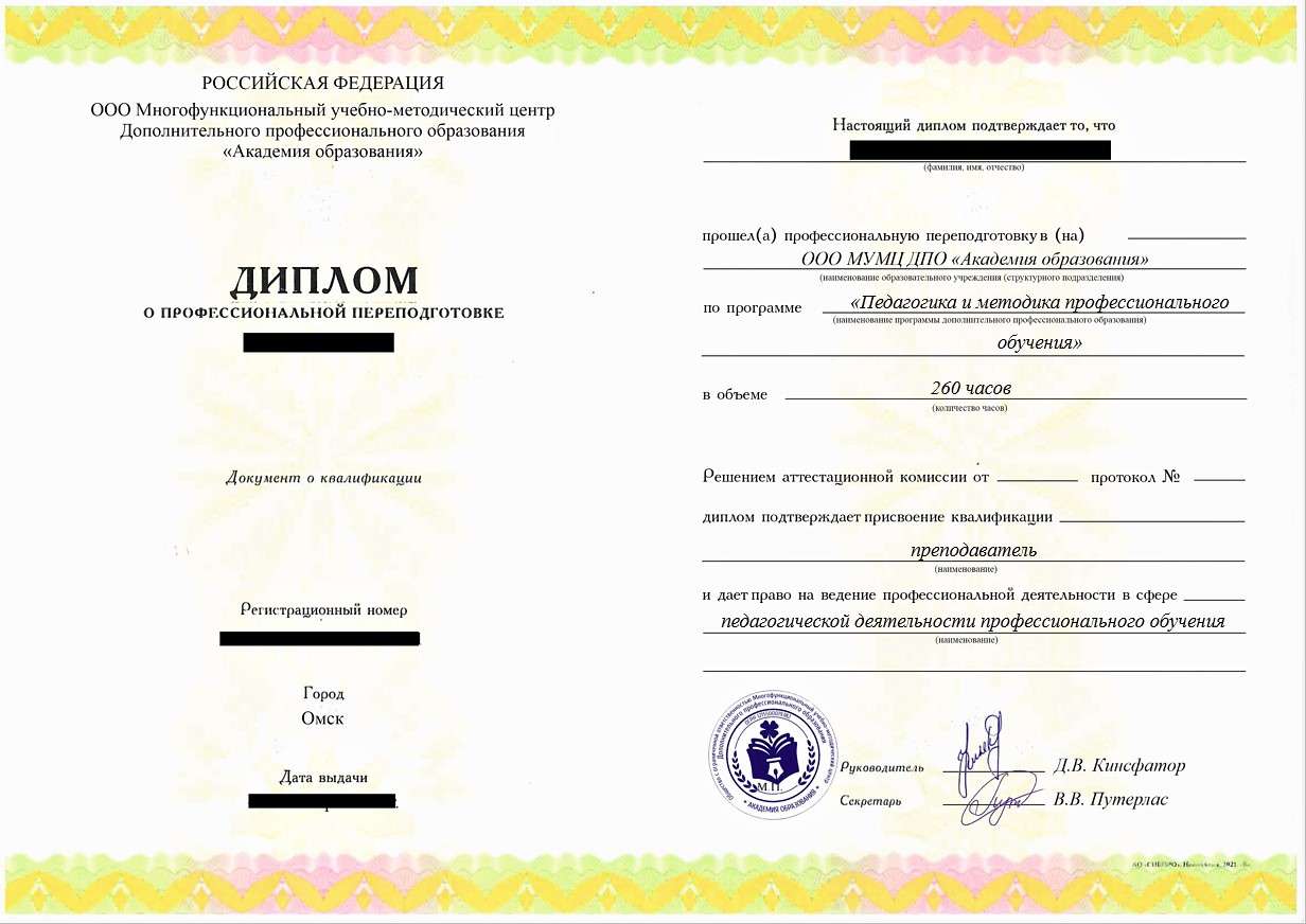 Переподготовка педагогика и методика профессионального обучения в Омске